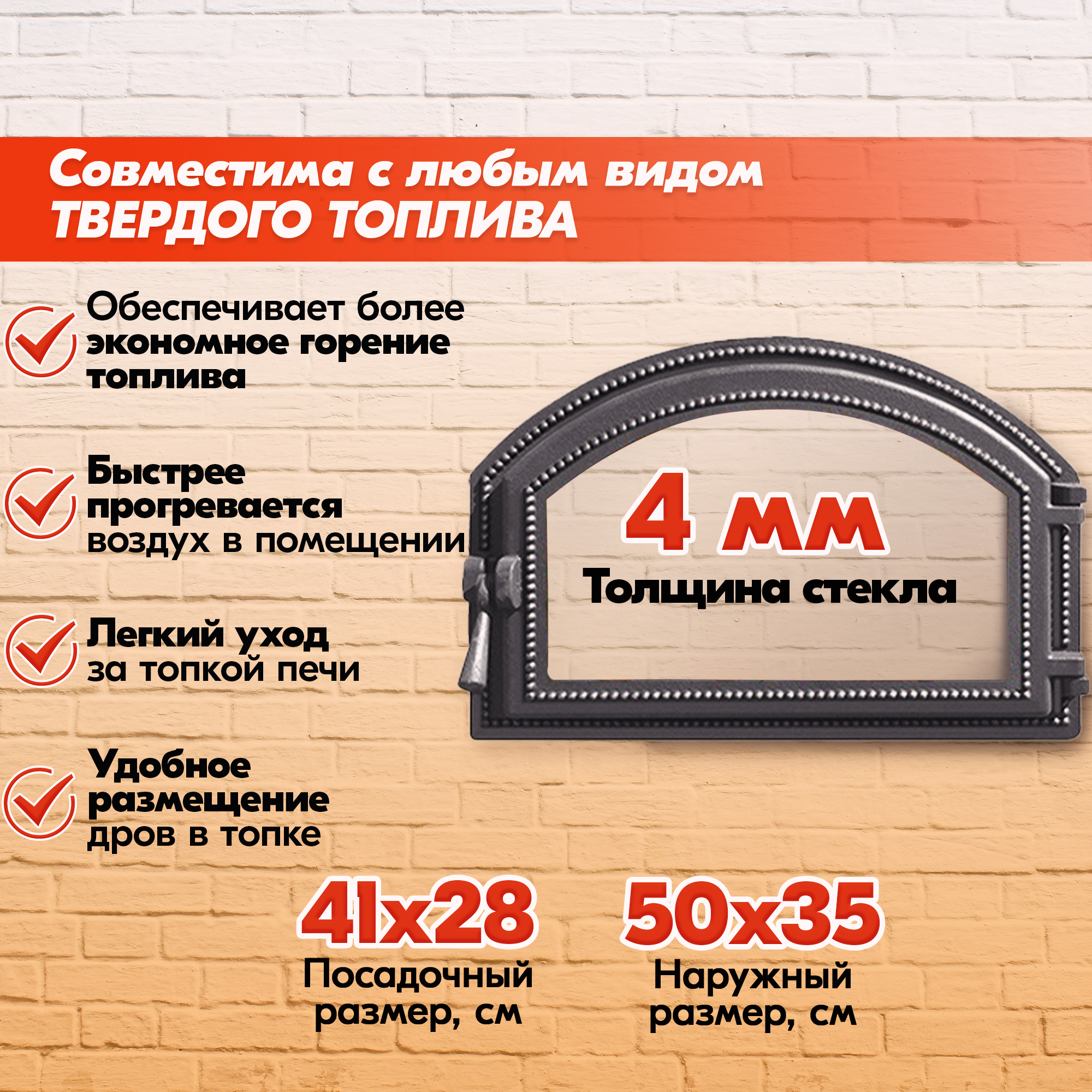 Печные дверки имеют красивую ручку для удобного открывания, и оформлены узором по контуру, в центре может быть располагаться либо огнеупорное стекло толщиной 4 мм или чугунный узор огненной тематике.