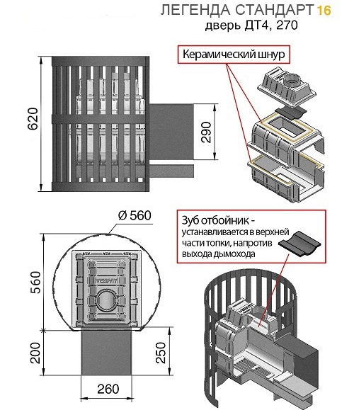 Преимущество печи в том, что топка печи состоит из 3-х элементов. На стыке между ними используется керамический шнур с рабочей температурой 1200 градусов. То есть топка печи абсолютно герметична! Для фиксации деталей между собой применяется болтовое соединение, что даёт 100% гарантию безопасности при эксплуатации.