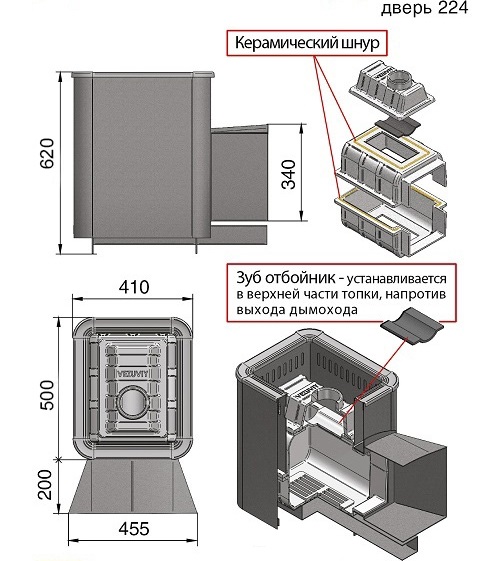 Топка чугунной печи «Сенсация» состоит из трёх элементов, толщиной не менее 12 мм. На стыке между ними используется керамический шнур с рабочей температурой 1200 градусов. То есть топка печи абсолютно герметична! Для фиксации деталей между собой применяется болтовое соединение, что даёт 100% гарантию безопасности при эксплуатации. Печи отлиты из специального сплава чугуна, которые выдерживают максимальные температурные перепады, т.е. даже при попадании большого количества воды чугунная печь сохраняет свою исключительную целостность и не лопается в отличие от изделий других производителей.