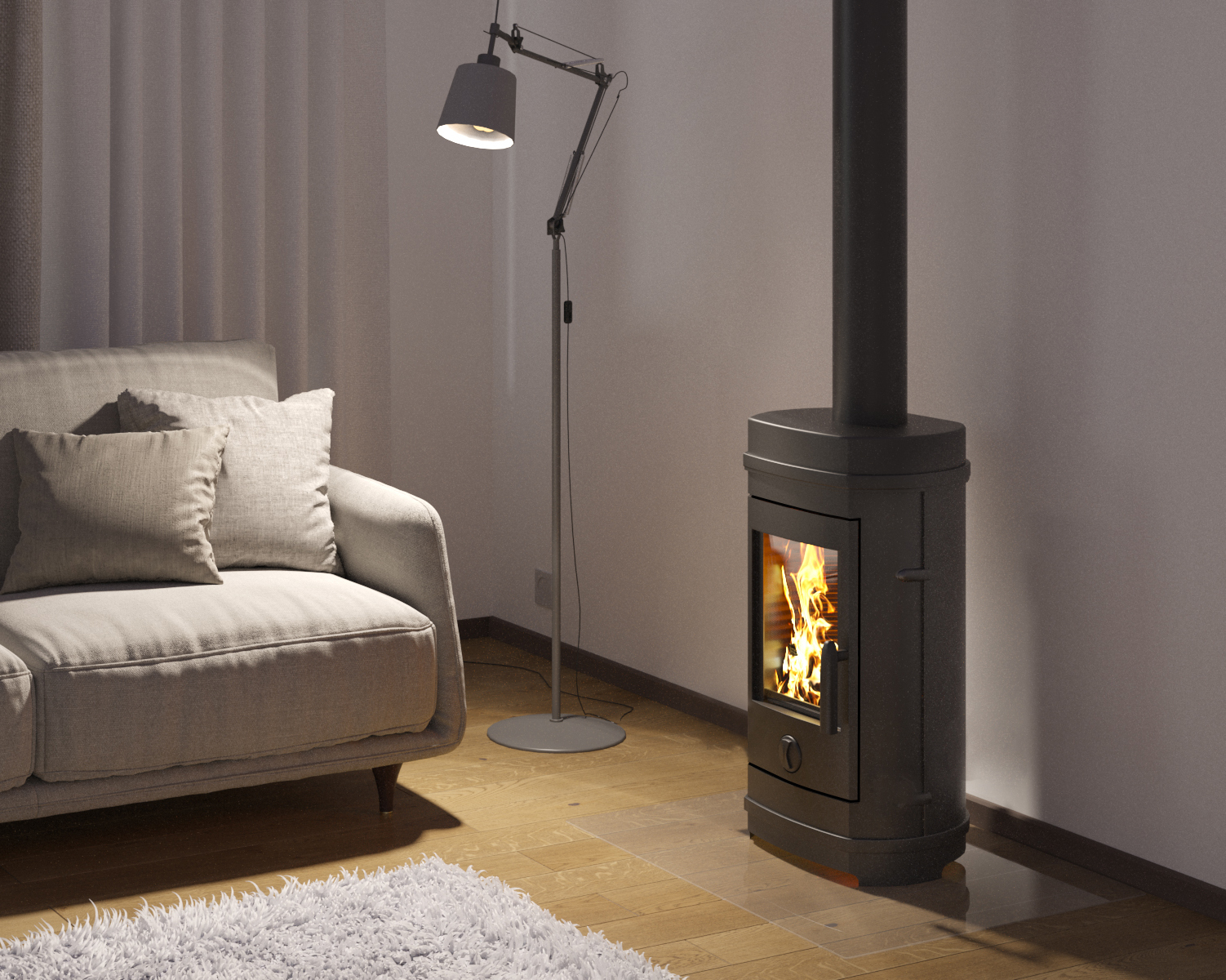 Система «чистое стекло» предотвращает засаживание и копчение стекла при горении дров.