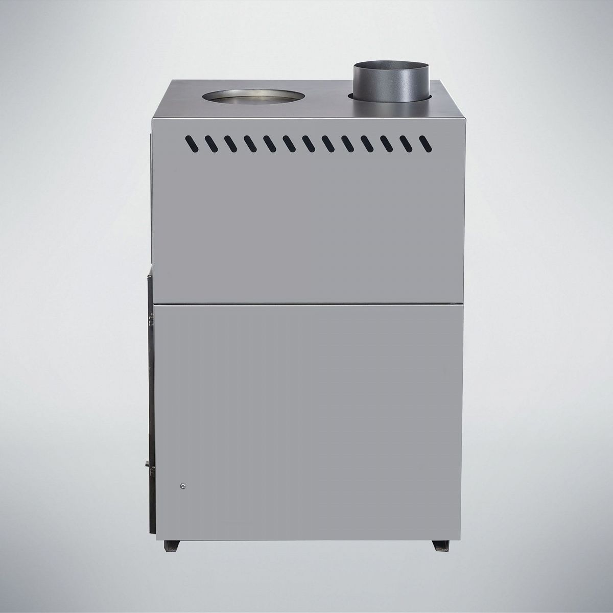 Диаметр патрубка для дымохода составляет 150 мм, подключение системы отвода дыма – верхнее.