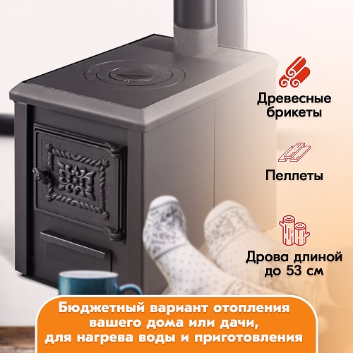 Отличный и бюджетный вариант отопления вашего дома или дачи – отопительно-варочная дровяная печь Радуга ПО-5 мощностью 5 кВт.