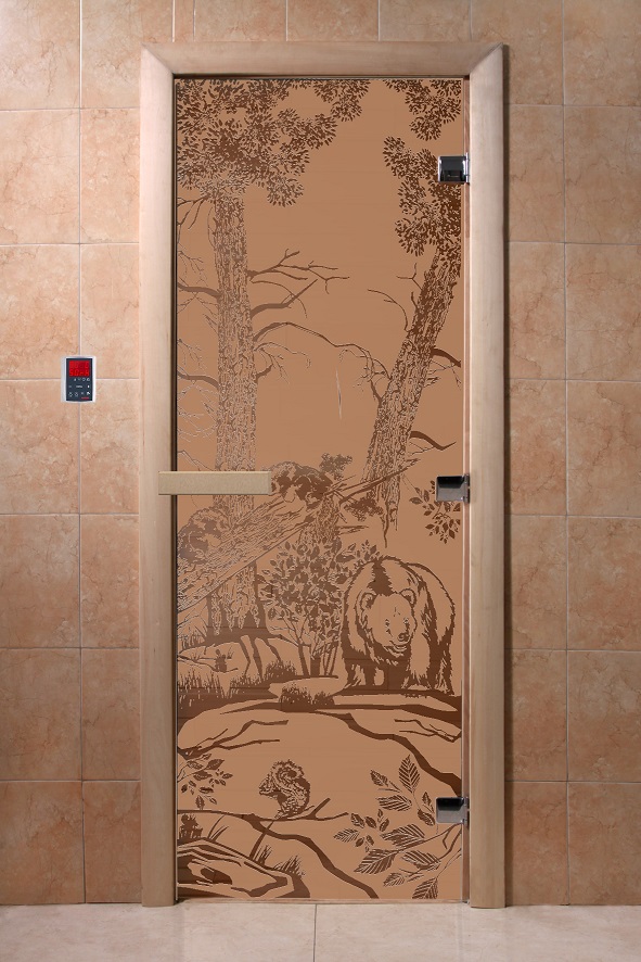 Дверь для сауны "Мишки в лесу" (матовая) 190х70 в Кирове | Доставка по России