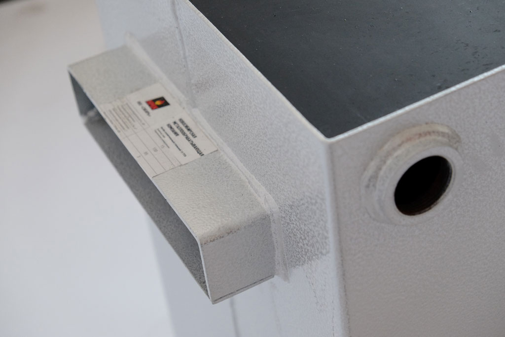- Совместимость с любой системой дымохода. Прямоугольное сечение дымохода удобно как при встраивании котла в кирпичную трубу, так и при переходе на круглую трубу типа «сэндвич» с использованием переходников с шибером.